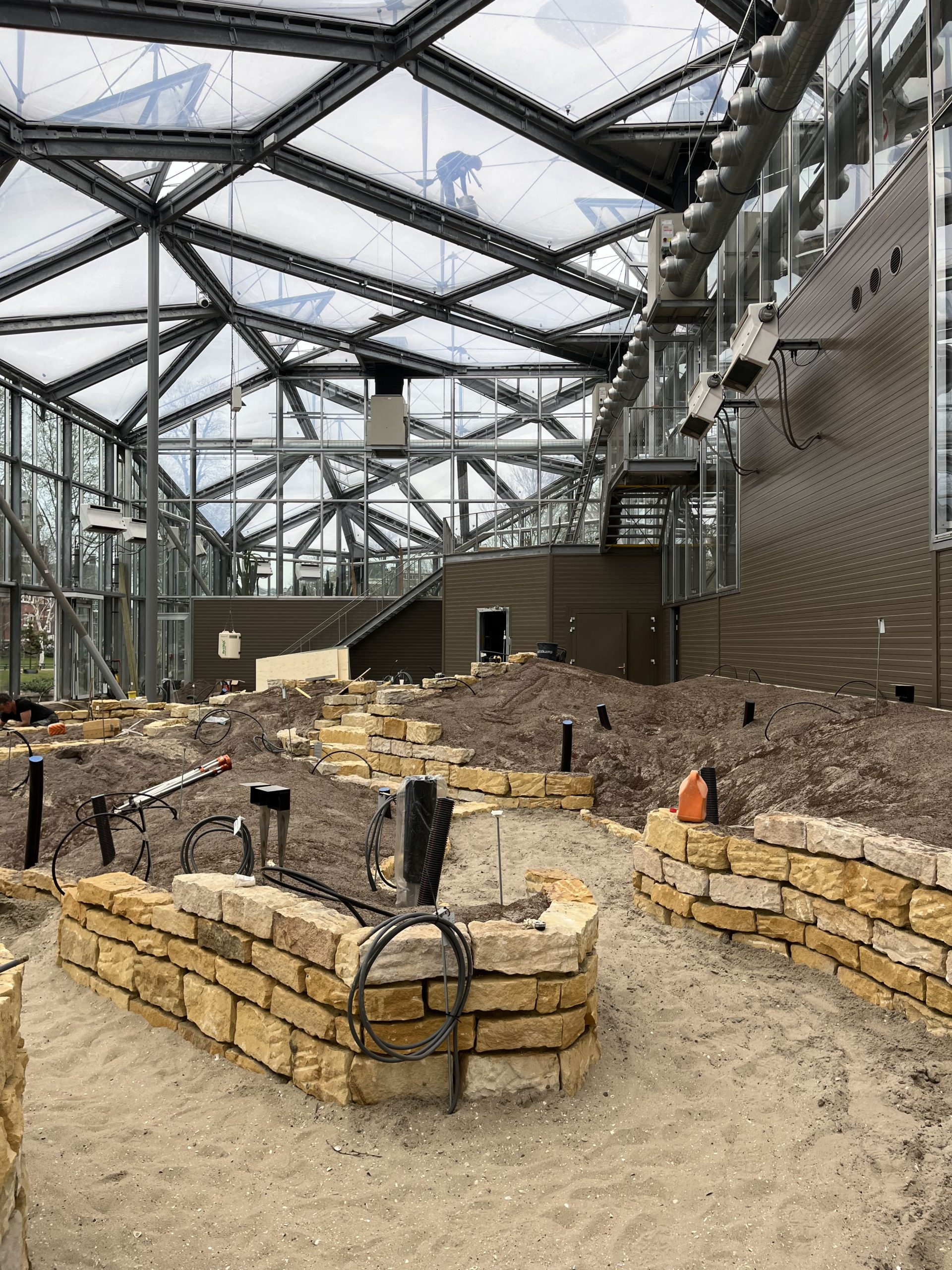 Wat gaat het snel met de Klimatenkas. In het Kaapse gedeelte is de routing nu al duidelijk te zien. Ook staat de brug al in de Tropen en neemt de Wereldkamer langzaam vorm aan. Ook van buitenaf is het state of the art ETFE-dak goed te bekijken. Wat een beauty is het al!
